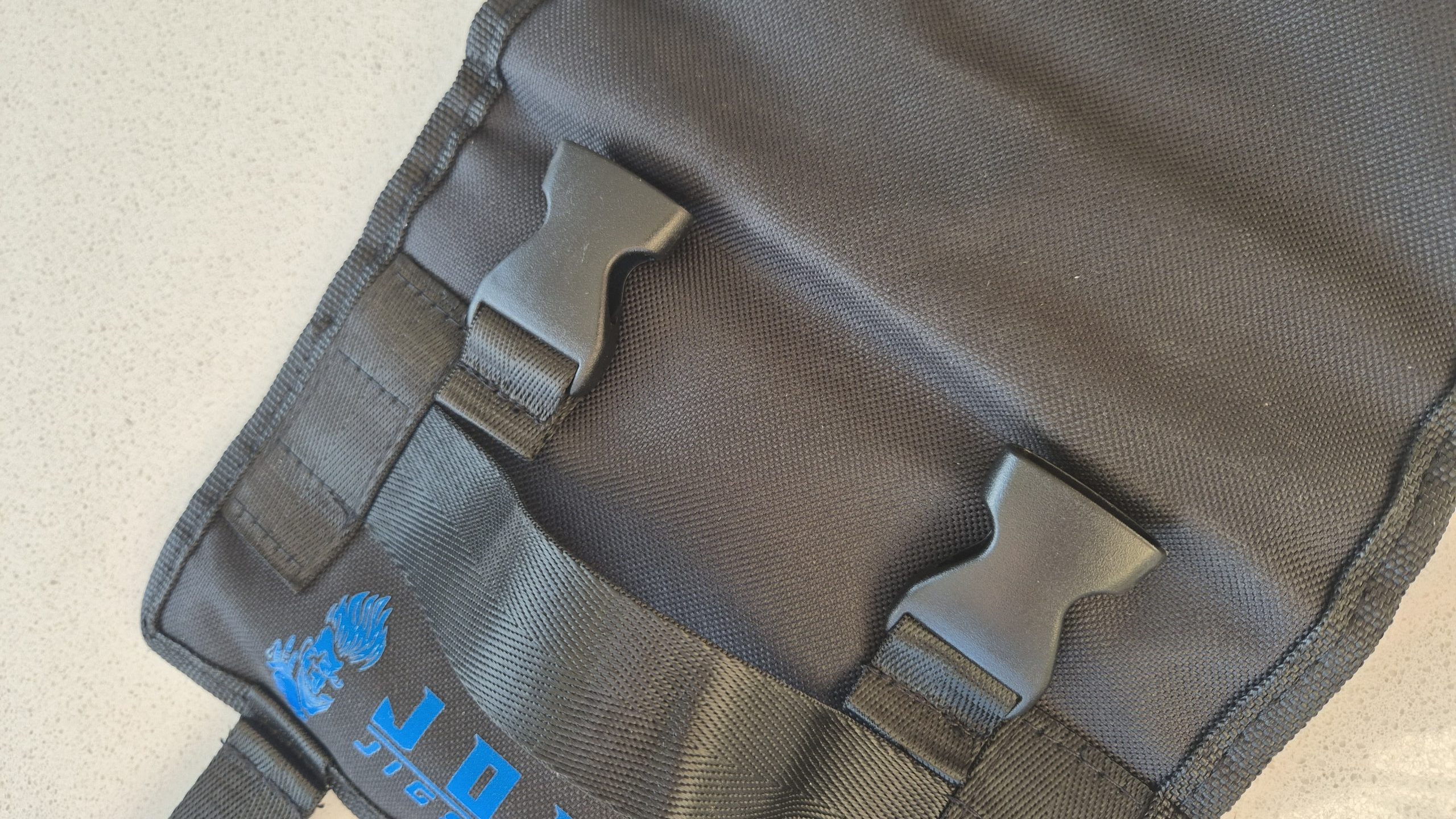 Just like the bigger XL Jig Roll it’s fully saltwater resistant with NO metal components with a reinforced webbing carry handle and with 2x tough straps and buckles to keep everything together and neat.