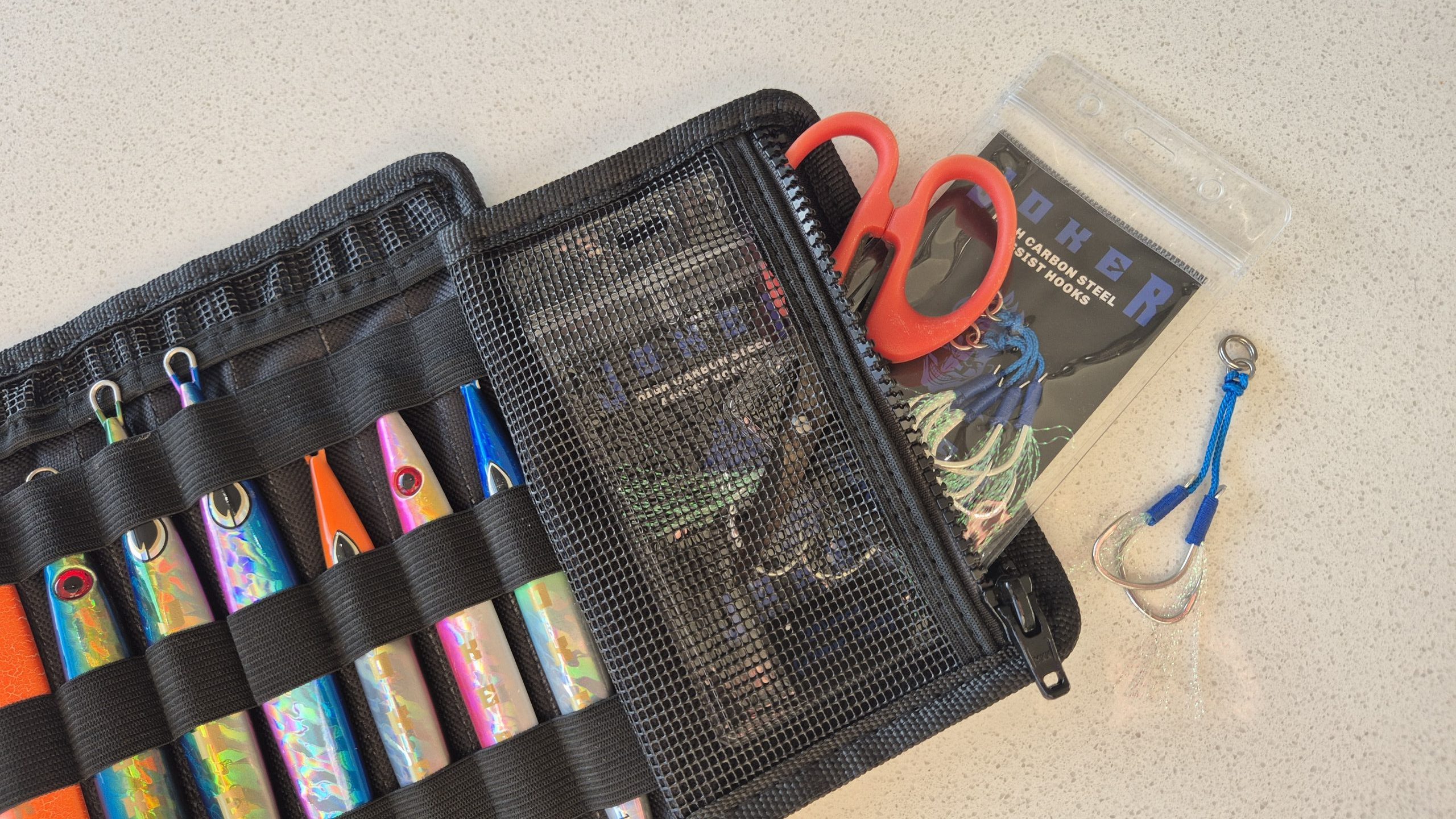 It has 12 elasticated jig compartments for storage of various size jigs, anything from 50g to 300g.